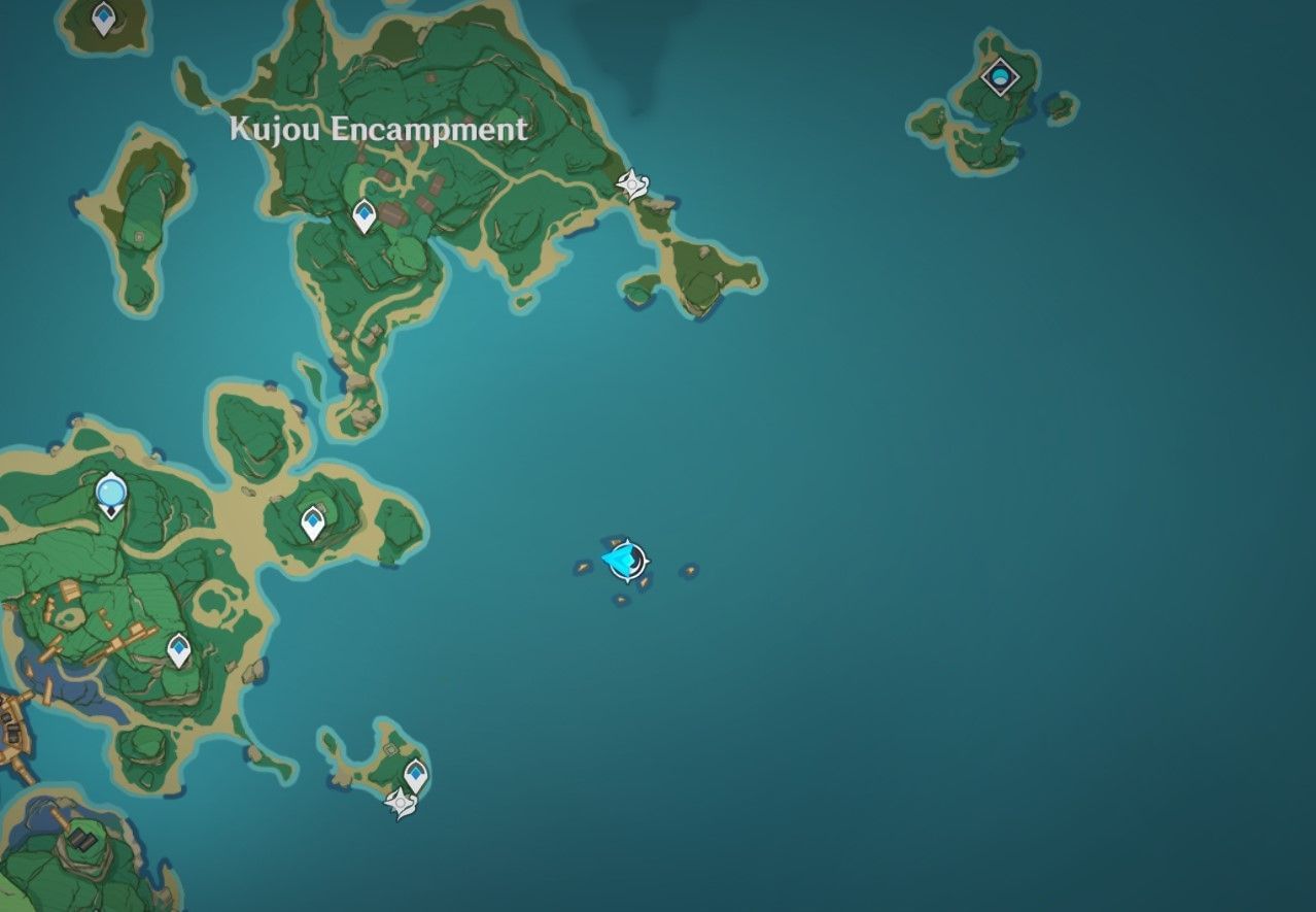 Raimei Angelfish only spawns in one location east of Tatarasuna; it's the area with several little islands south of the Kujou Encampment. There is one Waverider Waypoint north of it, with another southwest of it.
