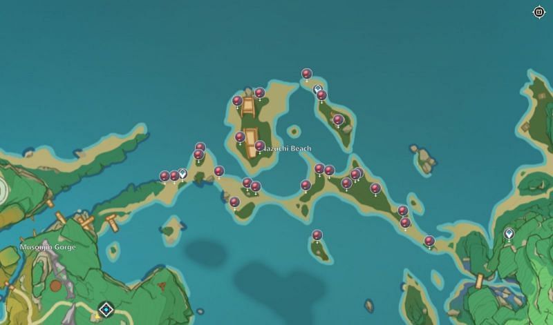 Nazuchi Beach is undoubtedly the best location to farm Dendrobium flowers. It has over 20 flowers, and players can collect them by simply strolling through the area.