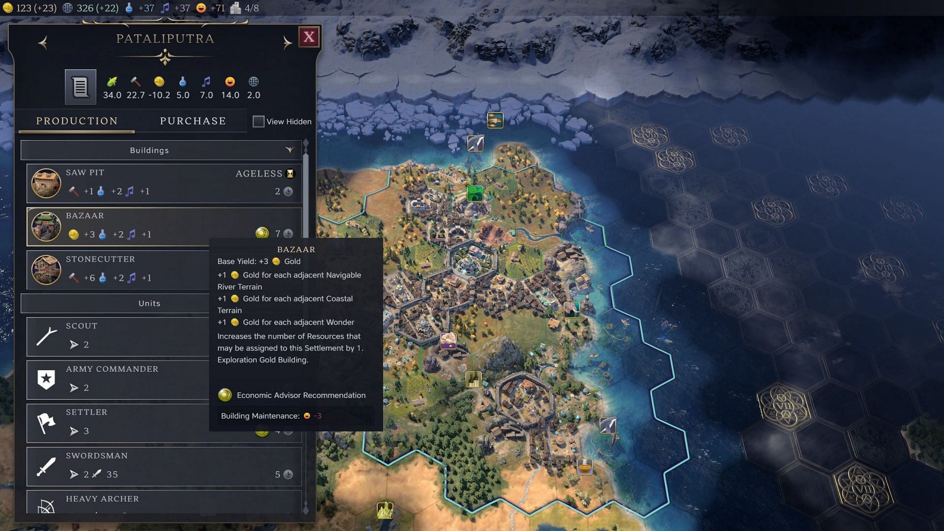At the start of the exploration age, a new section of the world map becomes available, but you cannot sail into the deep ocean right away. To reach these uncharted lands, you need to research cartography, which allows civilian and support units to move across deep waters.