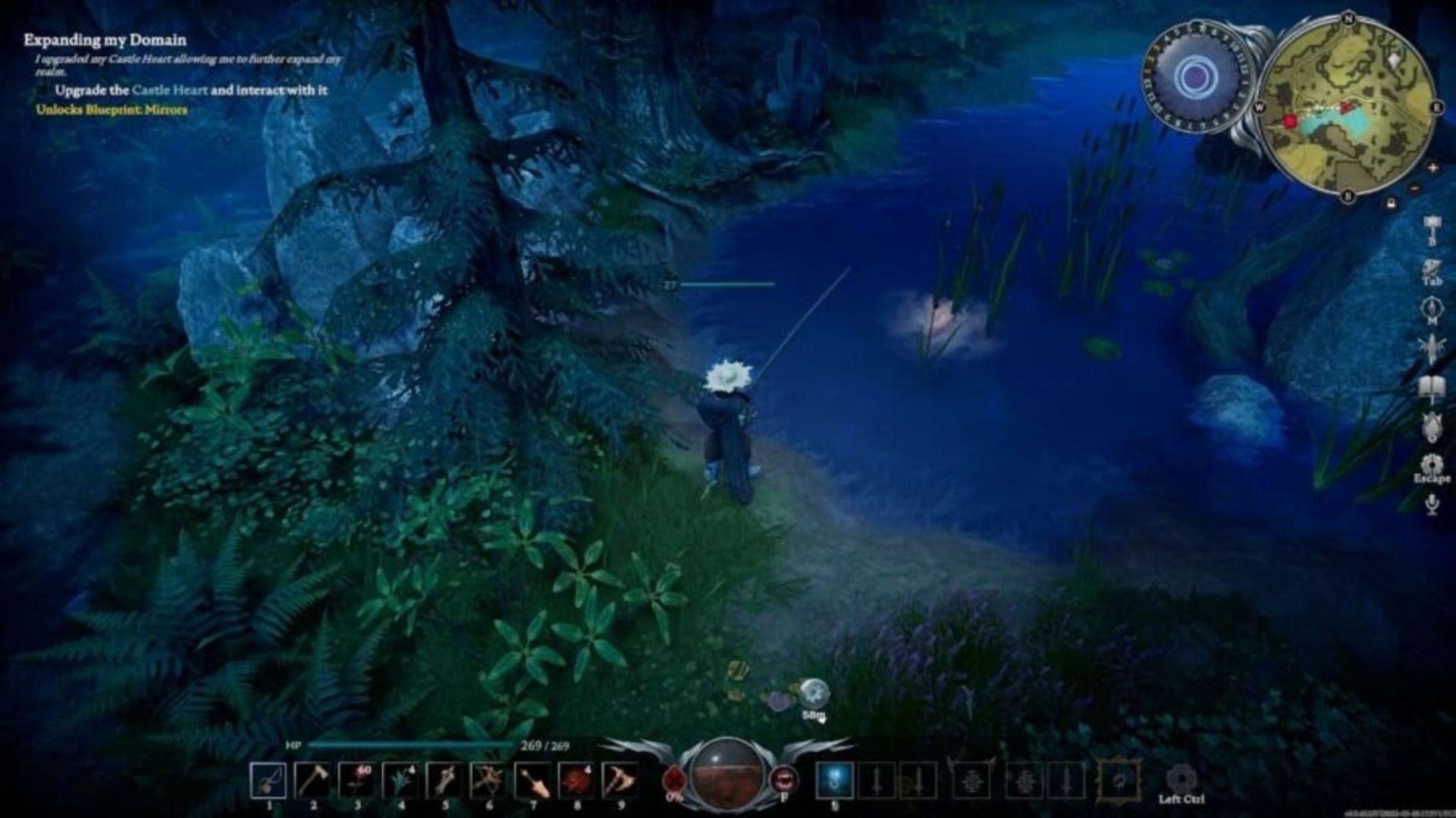 - Head to a nearby body of water. These are marked in V Rising's map by a blue coloration. Players will want to find a body of water that features a shimmering distortion in its waters, as these are indications that players can begin fishing.