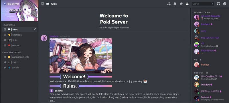 Upon clicking the "Accept Invite" button, you will automatically be led to the homepage of the Pokimane Discord server. The homepage looks something like this.