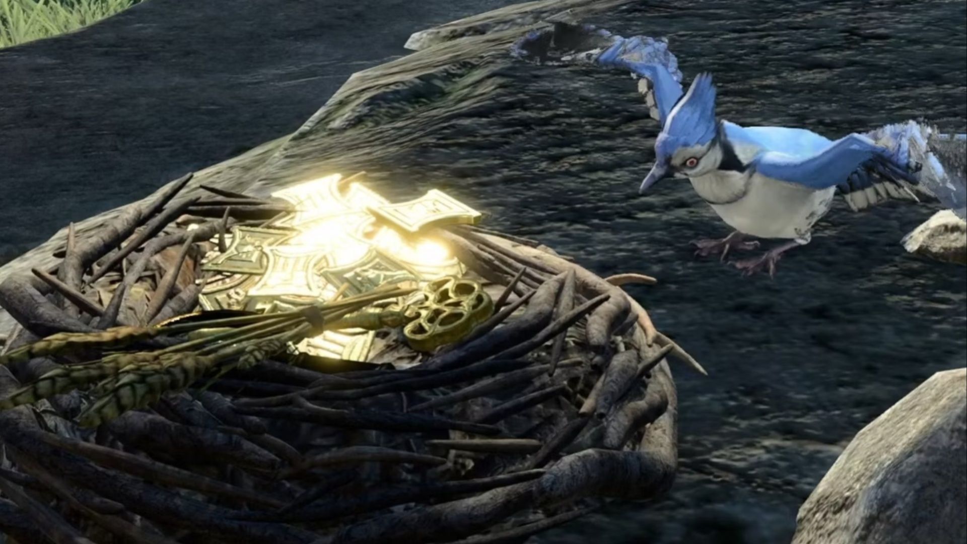 After you’re in Stealth mode, you’ll just have to wait for the bird to look away. Once the bird does this, you can now get both the Shiny Key and gold in its nest.