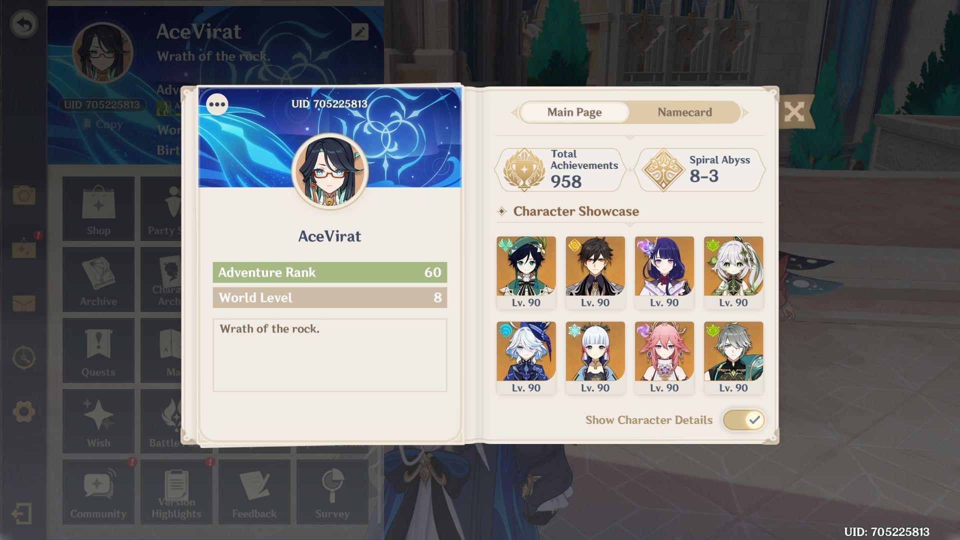 Enka.network is a website that creates custom character cards using details from your Genshin Impact profile. Therefore, to make a build showcase, first add the desired character to your profile and enable the "Show Character Details" option.
