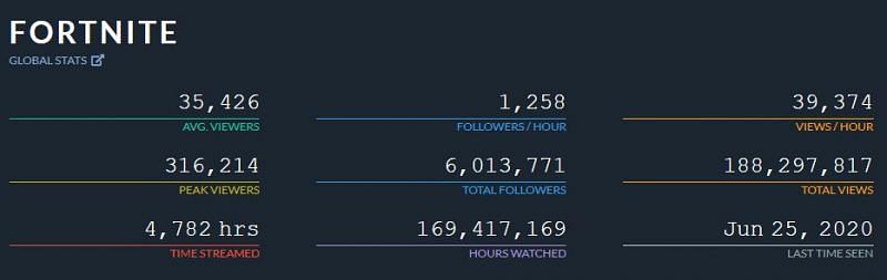 Here, we have the rest of his streaming and Fortnite gaming stats: