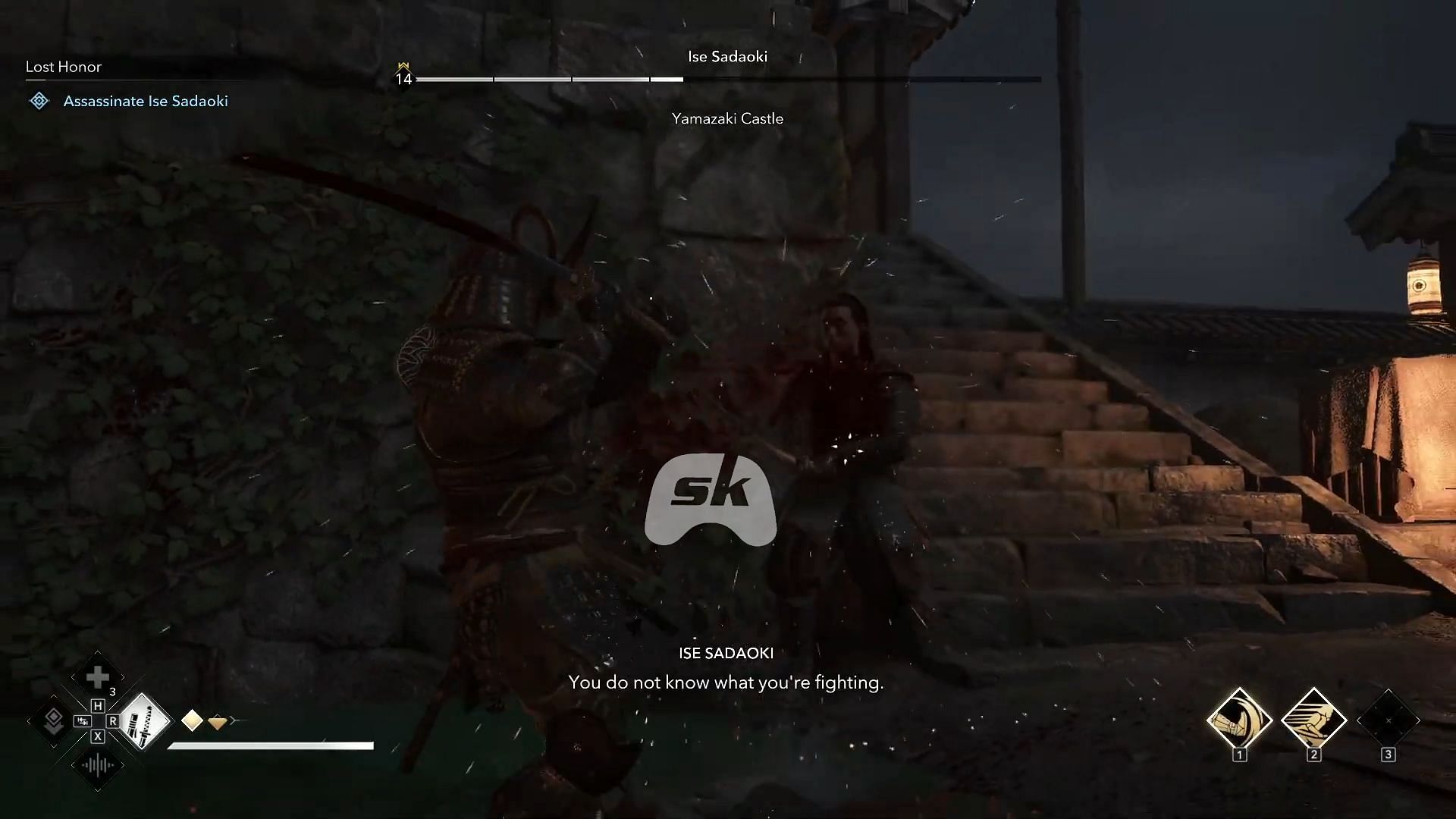 - Eventually, the boss fight with Ise Sadaoki (The Fool) kicks in. You can pick either character for the battle, but Yasuke’s brute strength makes it easier.