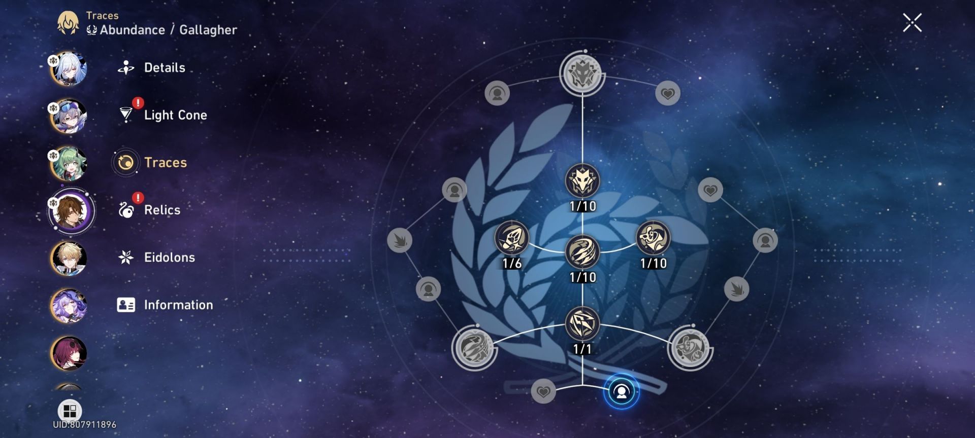- Bonus Trace 2 (Organic Yeast) - Utilizes his Ultimate to instantly advance Gallagher's Action Forward by 100%.