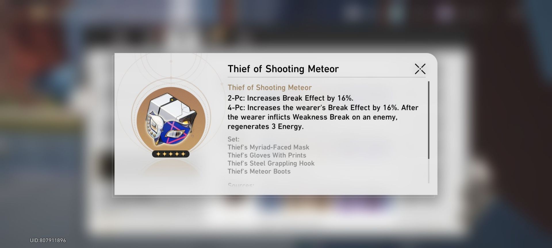 - 4-Piece Bonus: The wearer gains the Break Effect by 16%. Replenishes 3 energy following the use of weakness Break damage to an opponent.