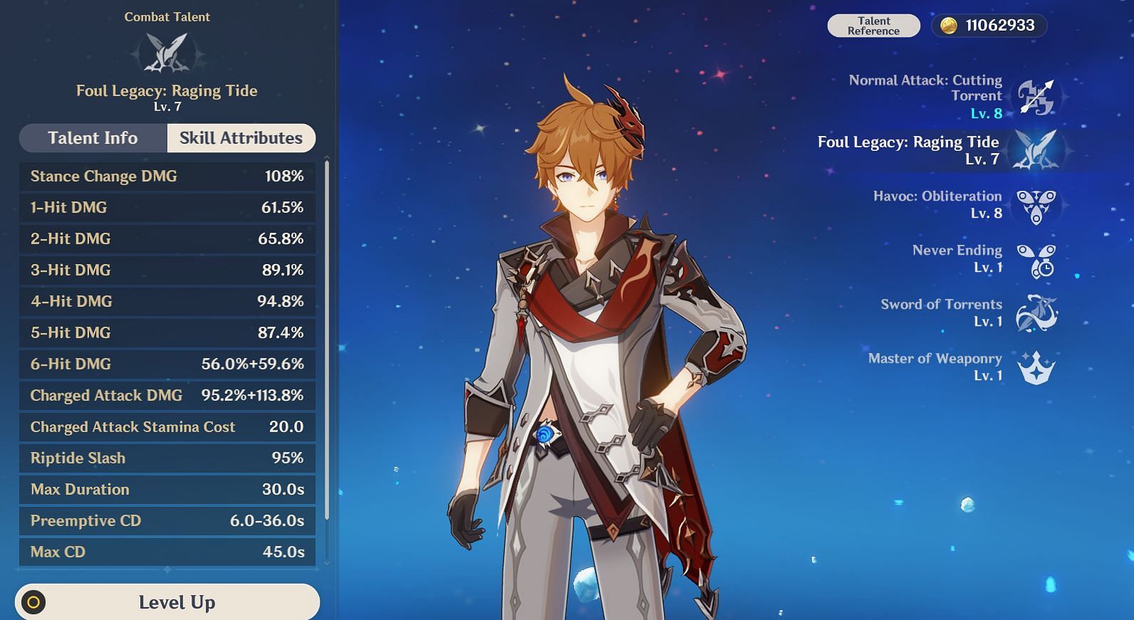 However, keep in mind that Tartaglia's Normal Attack and Elemental Skill have different skill attributes. Since he deals the most damage in the melee stance, Elemental Skill is the talent that should be prioritized the most, while Normal Attack is the least.