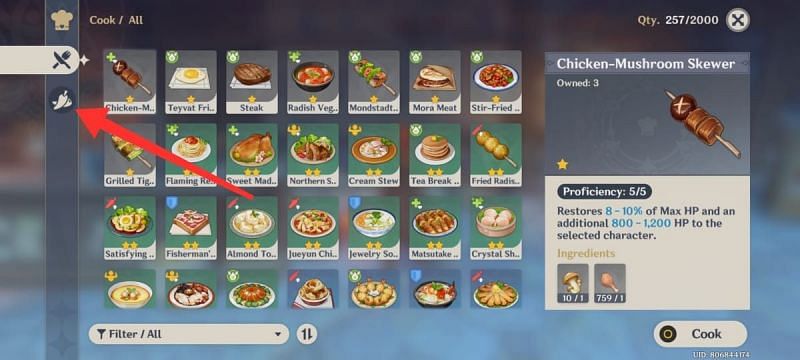 - After choosing the ingredients, players have to click on the "Cook" button and wait for the process to finish. The time taken can vary from product to product and ingredient to ingredient, depending upon their rarity.
