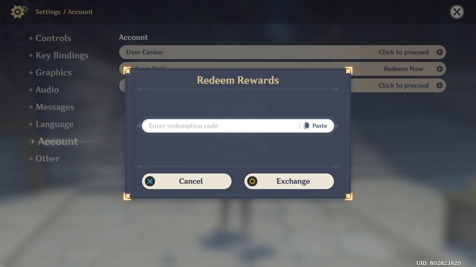 Once you're in, head down to the Account tab below the "Language" option. After clicking on it, you will see three new options open on the right side of your screen. This includes the User Center, Redeem Code, and Privacy Policy. Click on the "Redeem Code" option for the next step.