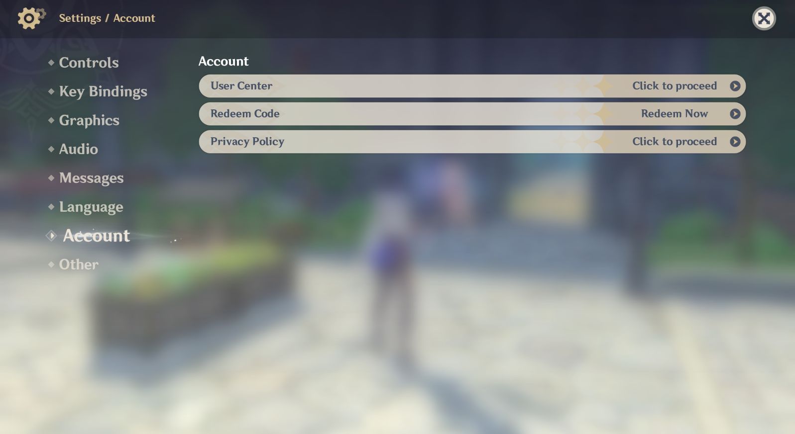 - Open the Paimon menu and select the Settings tab to enter the code.