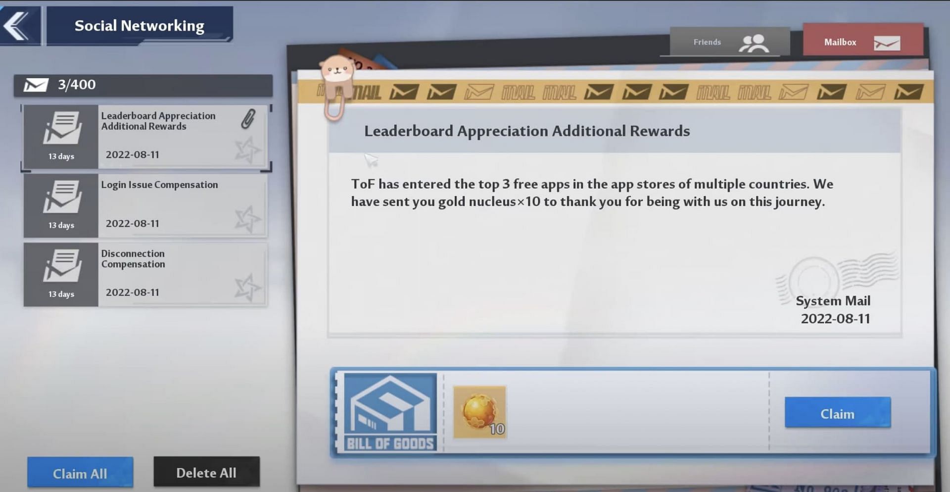 It is great to talk to friends in chat while playing. However, sometimes, the schedules of two players do not align, and players need to send messages to keep their teammates in the loop. This is where the ToF mail system comes into play.