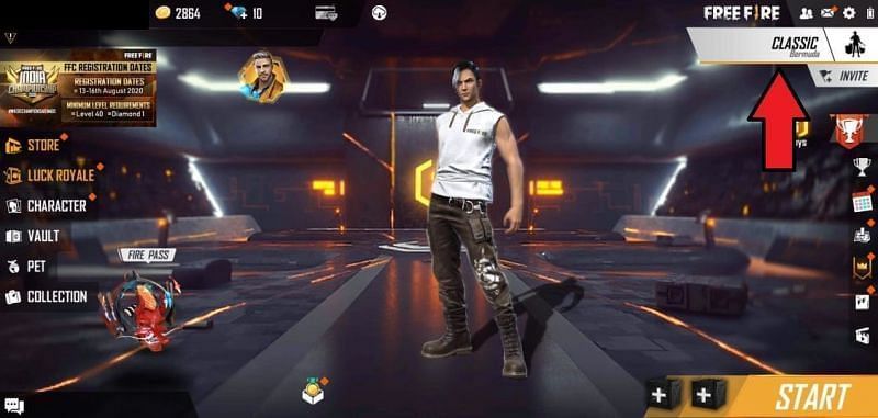 Step 1: Open Free Fire and click on the mode change option present on the top-right corner of the screen.