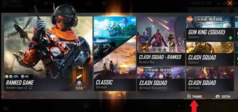 To start the training mode in Garena ree Fire, follow the steps given below: