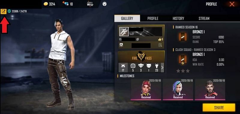 Step 1: Open Garena Free Fire and click on the profile banner present on the top-left corner of the screen.