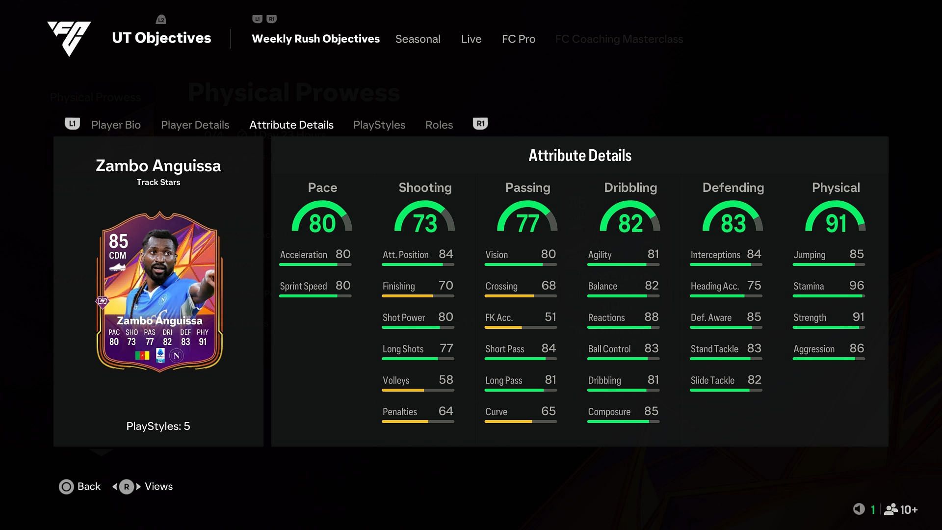 - Brute Force: Win five Rush matches while using a player with minimum 80 Physicality. Earn an 80+ x 3 players pack.