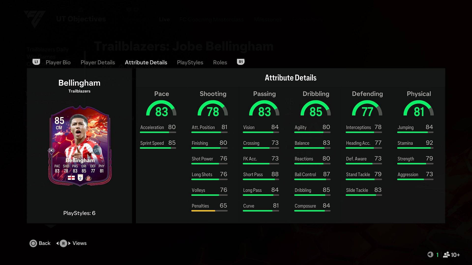 The players included in this promo have received upgrades to their stats and attributes, as well as brand-new PlayStyles. Some have even received additional Role+ and Role++ traits. The EA FC 25 Jobe Bellingham Trailblazers card in particular has the Relentless+ PlayStyle, along with the Box to Box++ Role as a central midfielder. This will make him amazing under the new FC IQ system.