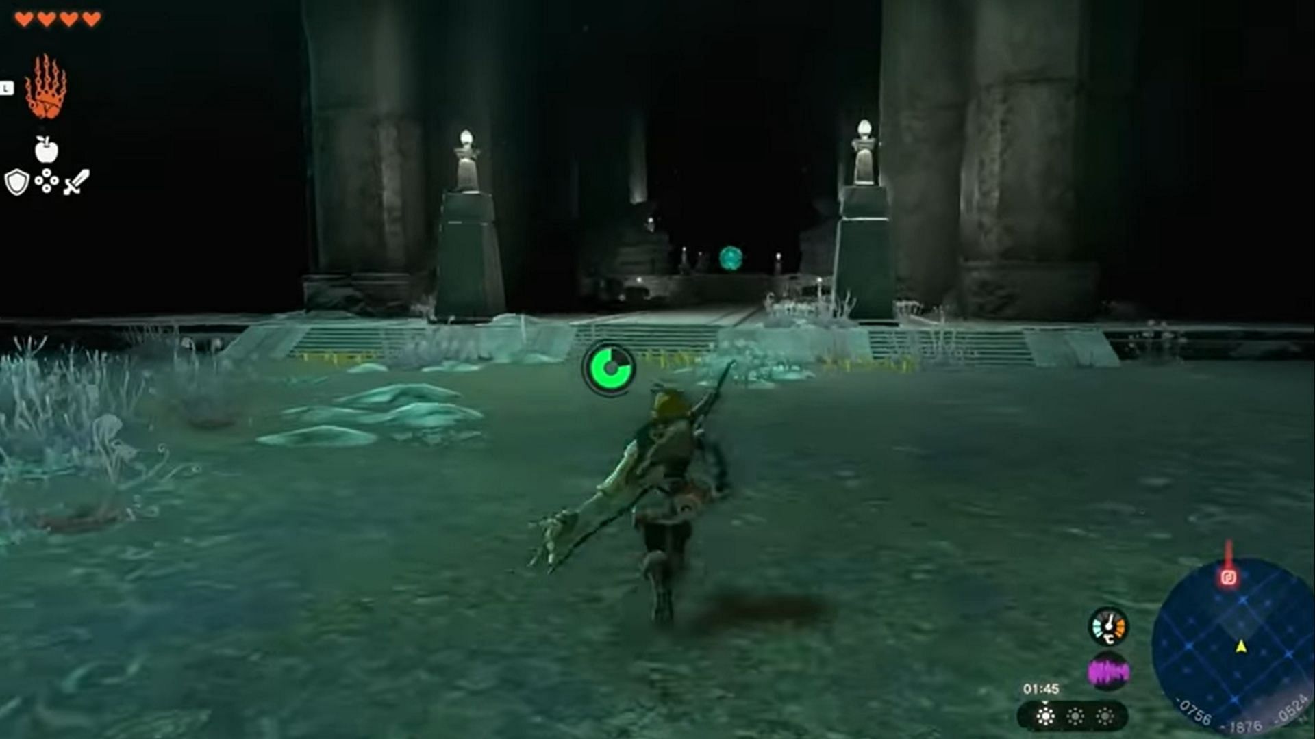 Once that is done, proceed to the Great Plateau, where four chasms lead underground. One of the easier ones is the Great Plateau North Chasm at the coordinates -0665, -1516, 0066. It will be pitch-dark on touching down, so be sure to use some Brightbloom for visibility. There will be a bunch of vehicle parts that you can use to create a vehicle with a light attachment. Build it if you wish and follow the path onwards.