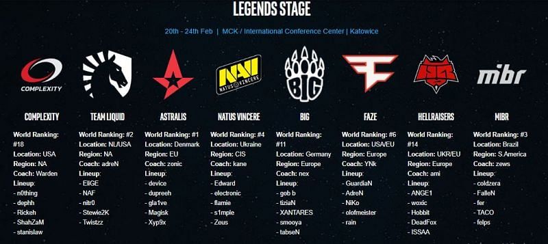 IEM Katowice will have 24 teams participating from all over the world. The tournament will have 120 players representing 24 countries all over the world. Players from New Zealand, Mongolia, Bulgaria, and Hong Kong will be represented for the first time ever in CSGO Majors. The teams will be primarily divided into 3 categories: Legends, Returning Challengers and Minor Challengers.