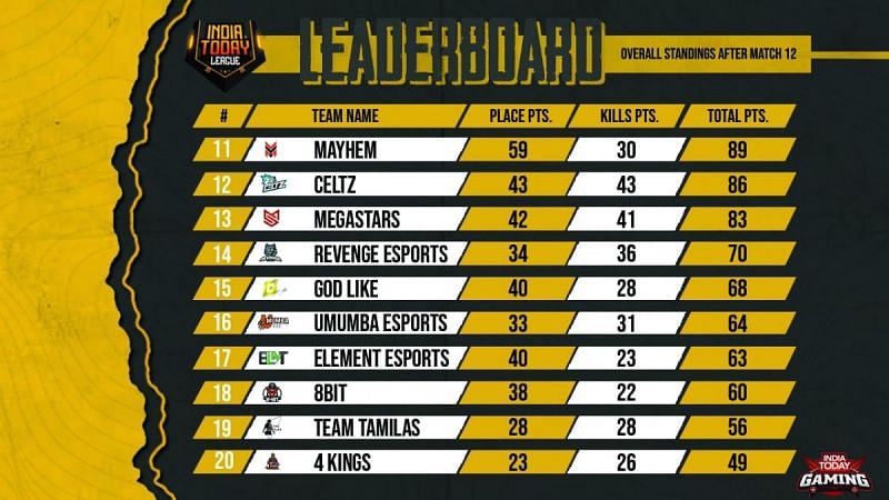Here one can find the complete overall results and standings of PUBG Mobile's India Today Invitational League after Day 3.