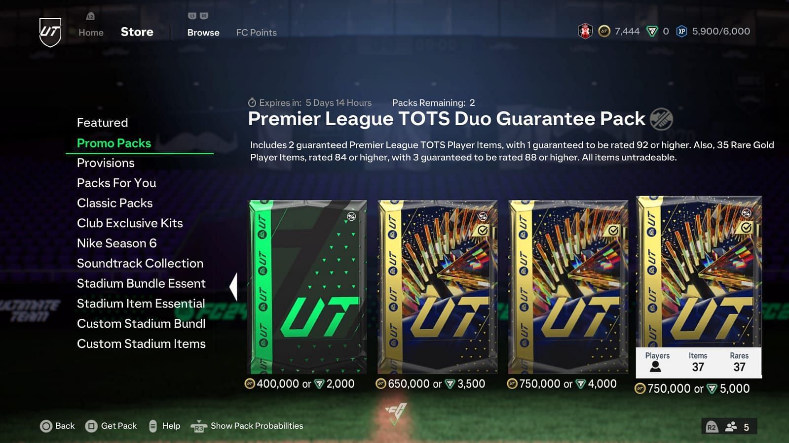 There have already been several promo packs added to the Ultimate Team Store during the ongoing promo. However, with the EA FC 24 Premier League TOTS Duo Guarantee Pack costing 750,000 coins or 5,000 FC Points, it is undoubtedly the most expensive and enticing one. It can also be bought twice, which adds to the overall appeal.