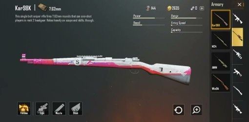 The Kar98k is a bolt-action sniper rifle that uses the 7.62mm ammo, whereas the MK14 is a DMR (Designated Marksman Rifle) which also uses the 7.62mm ammo. It is more versatile than the Kar98 as it can also be used during close and medium-range gunfights.