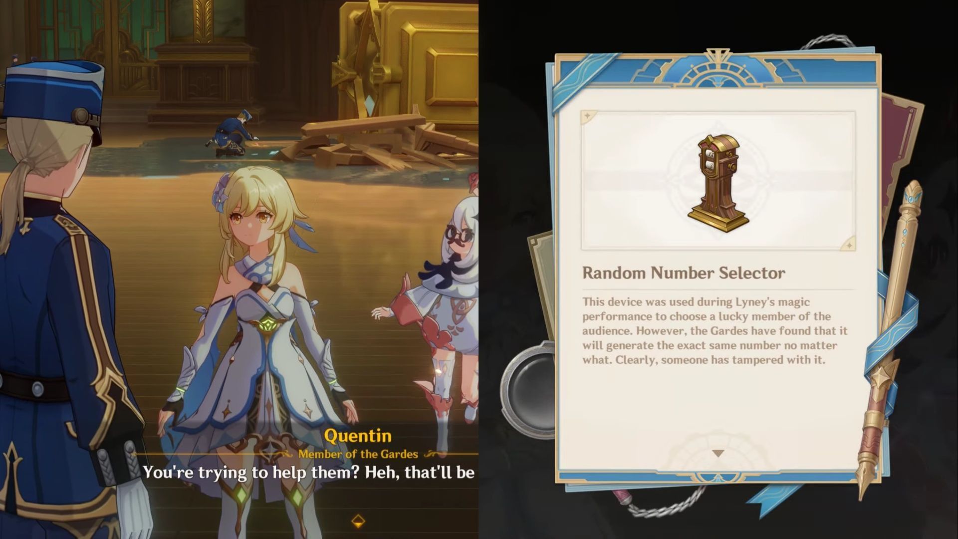 The Fontaine Gardes will reveal a major clue about the Random Number Selector, which Lyney used to pick Halsey from the audience. It appears that the machine was rigged to always land on the same number.