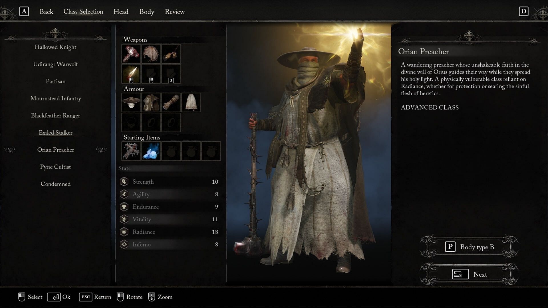 Think of Radiant spells as holy magic, Miracles in the Dark Souls games, or Faith in Elden Ring. Radiant Magic in Lords of the Fallen can heal you, as well as provide defensive buffs to your character. It’s incredibly useful if you feel like survival is going to be an issue. Thankfully, there’s a class that already comes built for this type of gameplay: the Orian Preacher.