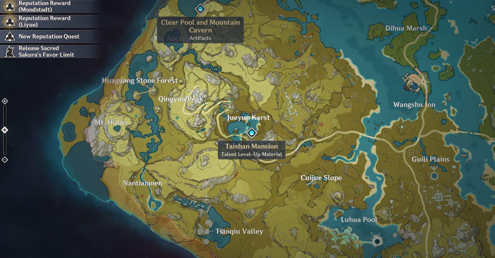 Blossom of Wealth Leyline Outcrops can be found on the map with an icon that resembles a golden cloud.
