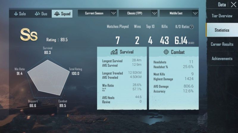 Million Roses has also played 7 squad games in the Middle East server and has won 2 games. He has racked up 43 kills at a K/D ratio of 6.14. He also has a single duo game in the KRJP server and has killed 1 opponent in the process.