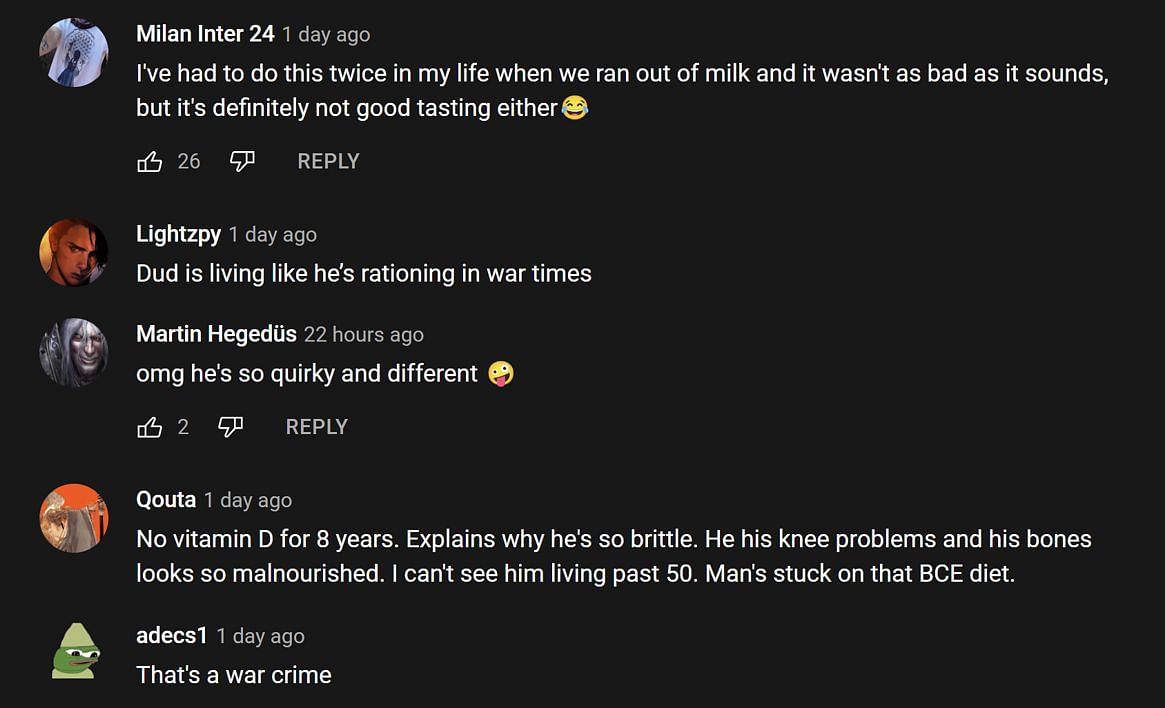 The statements startled the streamer's Twitch chat audience, and the same happened in the YouTube comments section. One fan's opinion, which was well-liked by other community members, stated: