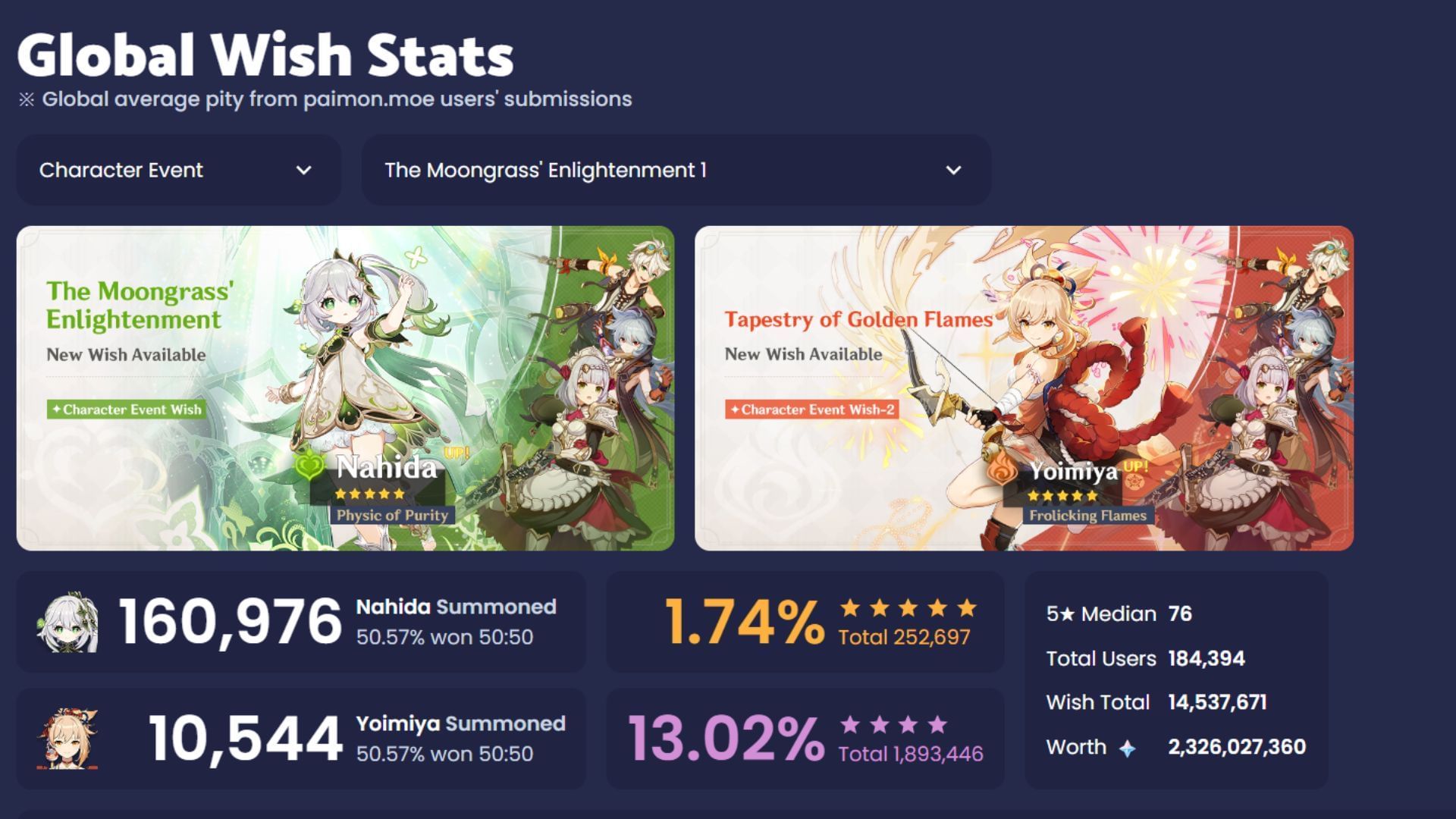 Travelers should know that other data from Paimon.moe indicates that almost 95% of those pulls were for Nahida rather than Yoimiya.