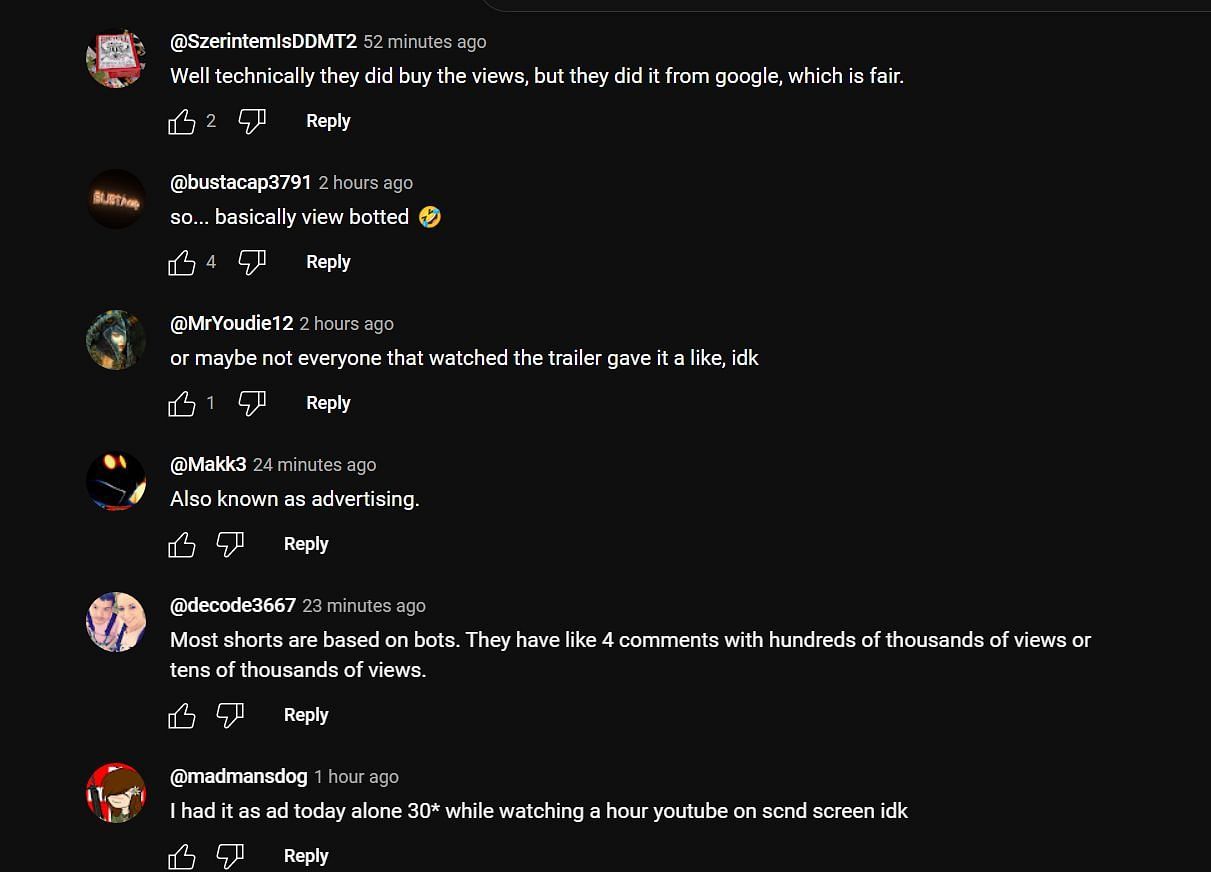 "Either way it's not really a surprise. I think that people are more positive about the second trailer for sure. But yeah, this isn't really evidence of view-botting in my opinion."