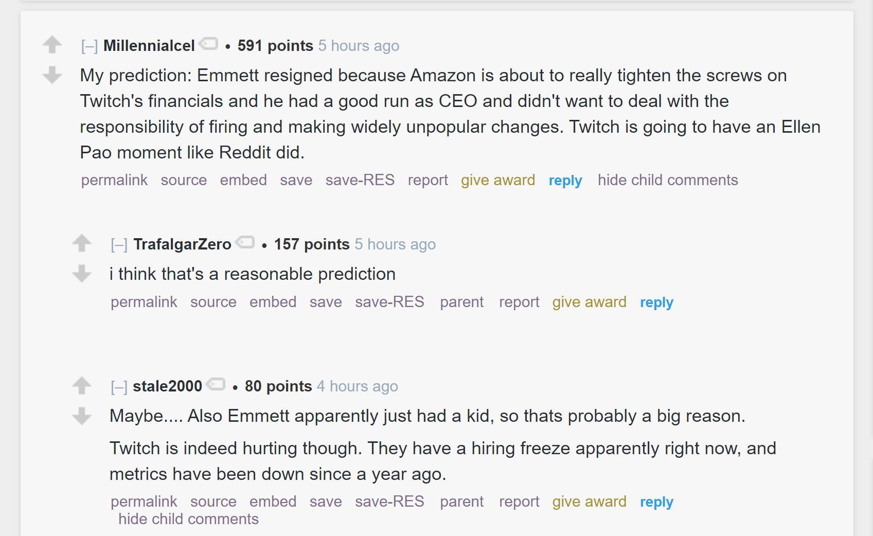 Others speculated upon the possible reasons for Emmett Shear's resignation as CEO of Twitch: