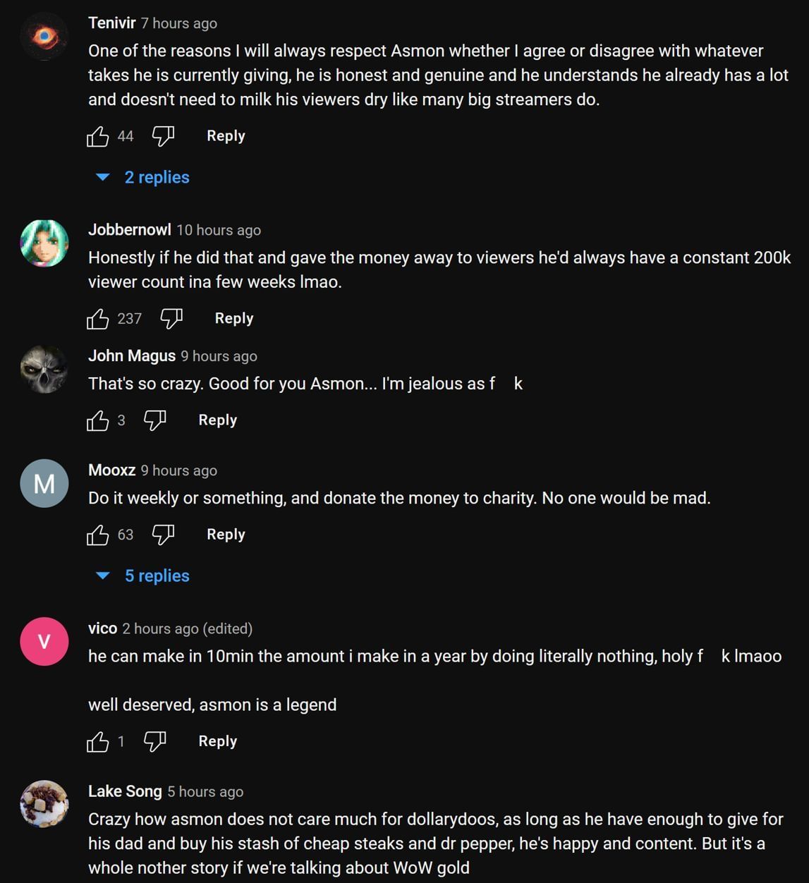 While many viewers praised Asmongold for not running constant advertisements on his Twitch channel, another community member suggested the streamer do weekly bounty streams and donate the proceeds to charity.