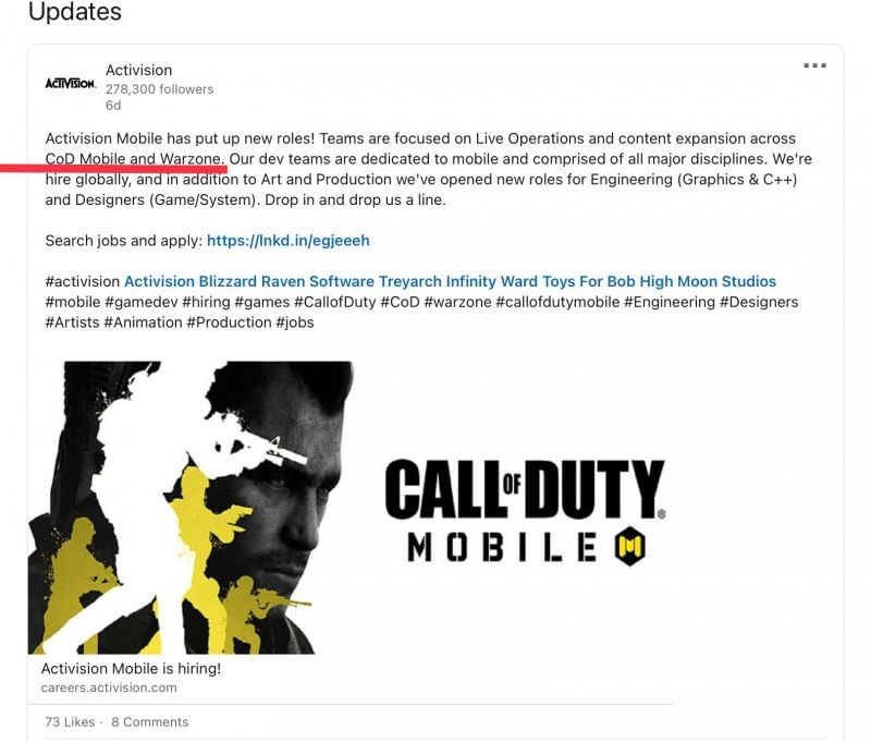 Activision recently put out various job listings for different mobile development roles for COD Mobile and WarZone. The official post read that the development team will be dedicated to mobile and will focus on production, engineering, art, design, and marketing.