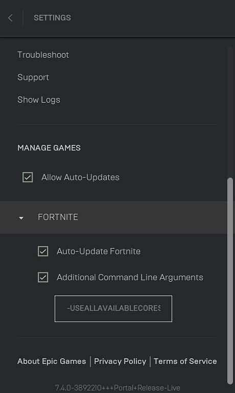 Disabling the streaming settings might also solve the textures problem. To do that, go to your Epic Games launcher, and click on ‘Fortnite settings’. Delete the –NOTEXTURESTREAMING command in the Additional Command Line Arguments menu.