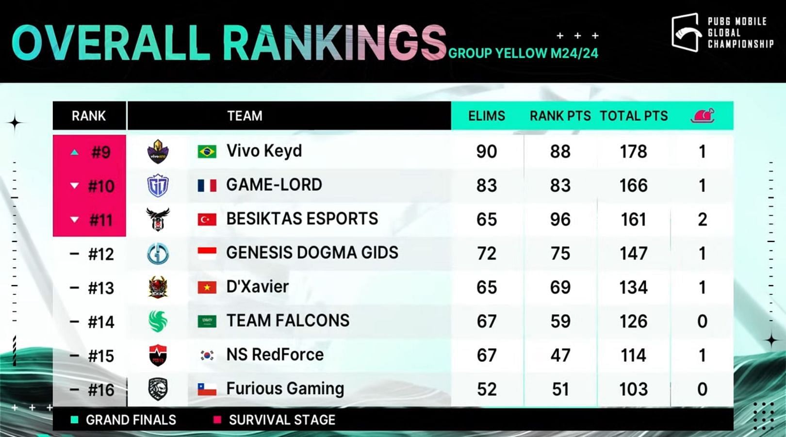 Saudi Arabian team Geekay Esports, too, put on an excellent display of skill in Group Yellow. Initially, the side looked set to qualify directly for the Grand Finals, but a lack of consistency caused them to finish in the fifth spot with 207 points.