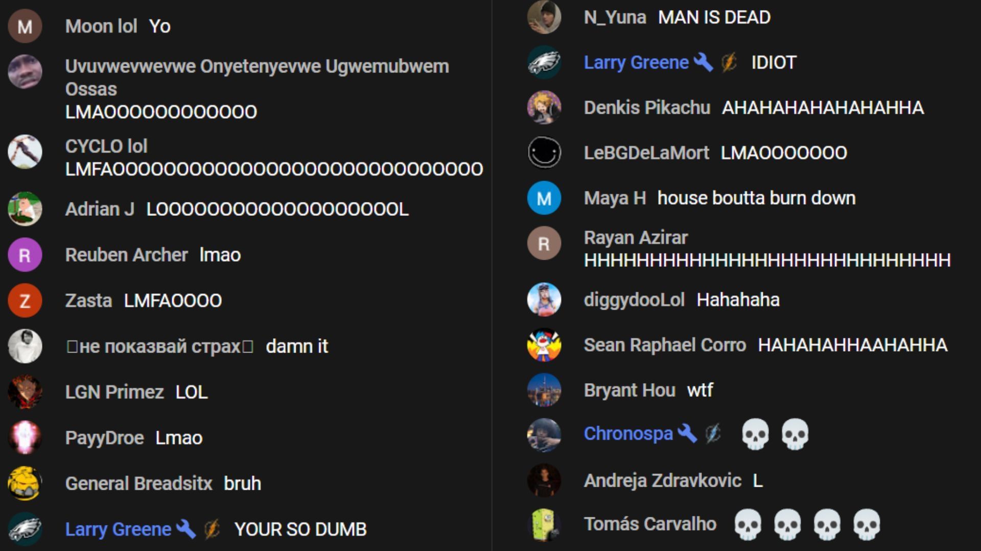Many in the chat had warned him of not doing anything like it inside the house. The mods even started calling him dumb after he lit the fuse of the Pikachu cracker.