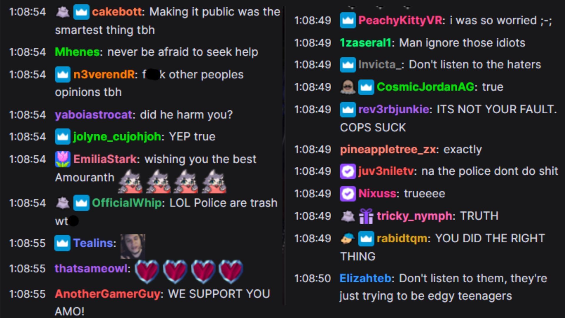 Some thought handling it privately meant going to the police, but Amouranth explained that this did not work either. She told her audience that the authorities could do little in cases of verbal abuse and that the police could not help her until she had been physically assaulted or could prove physical damage to her property.
