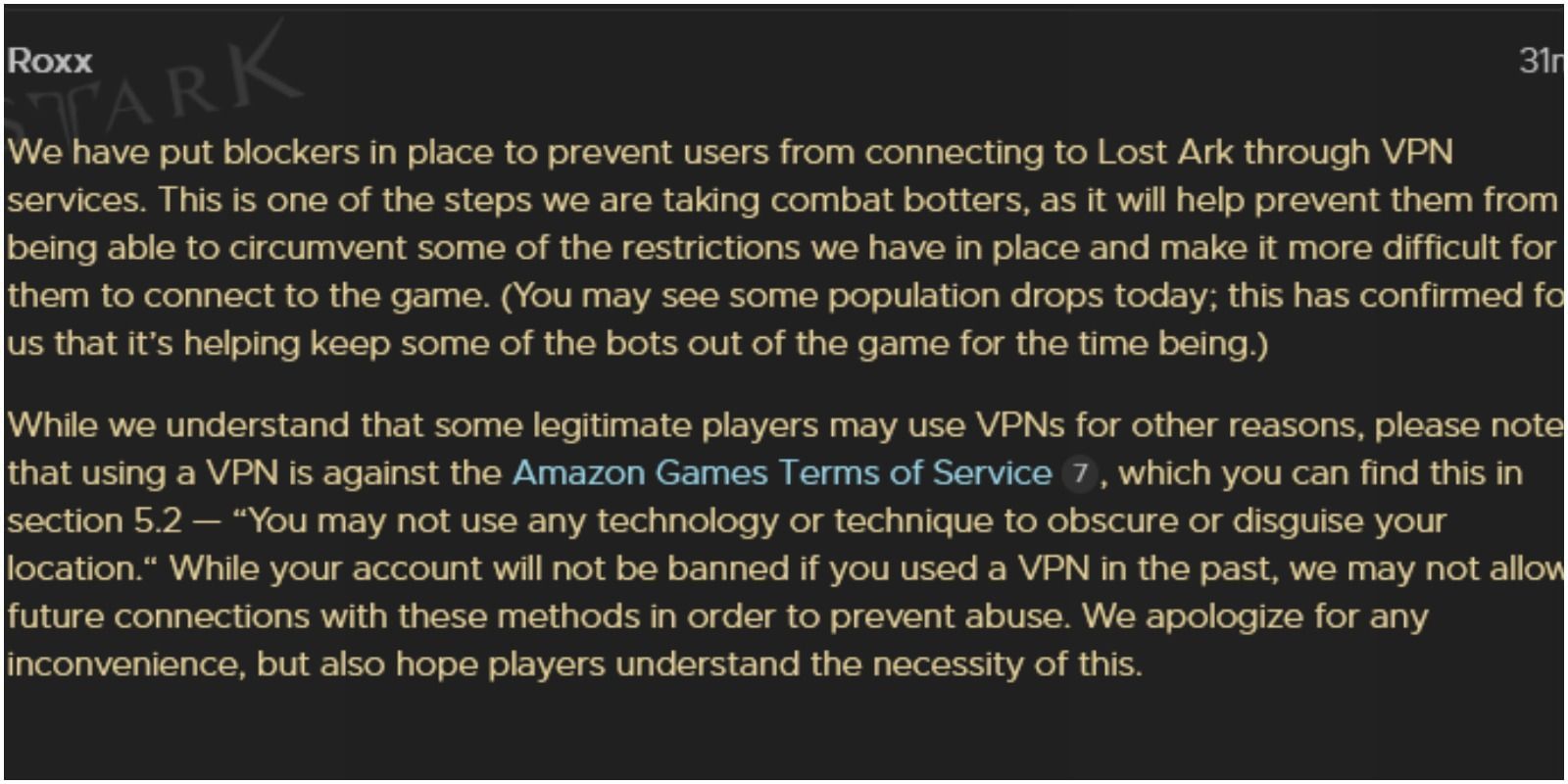 For some, banning VPNs makes even less sense since Lost Ark is legally available in many regions and bots can be operated from those regions. Thus, prohibiting VPNs will ultimately matter very little. It will only end up alienating the base.