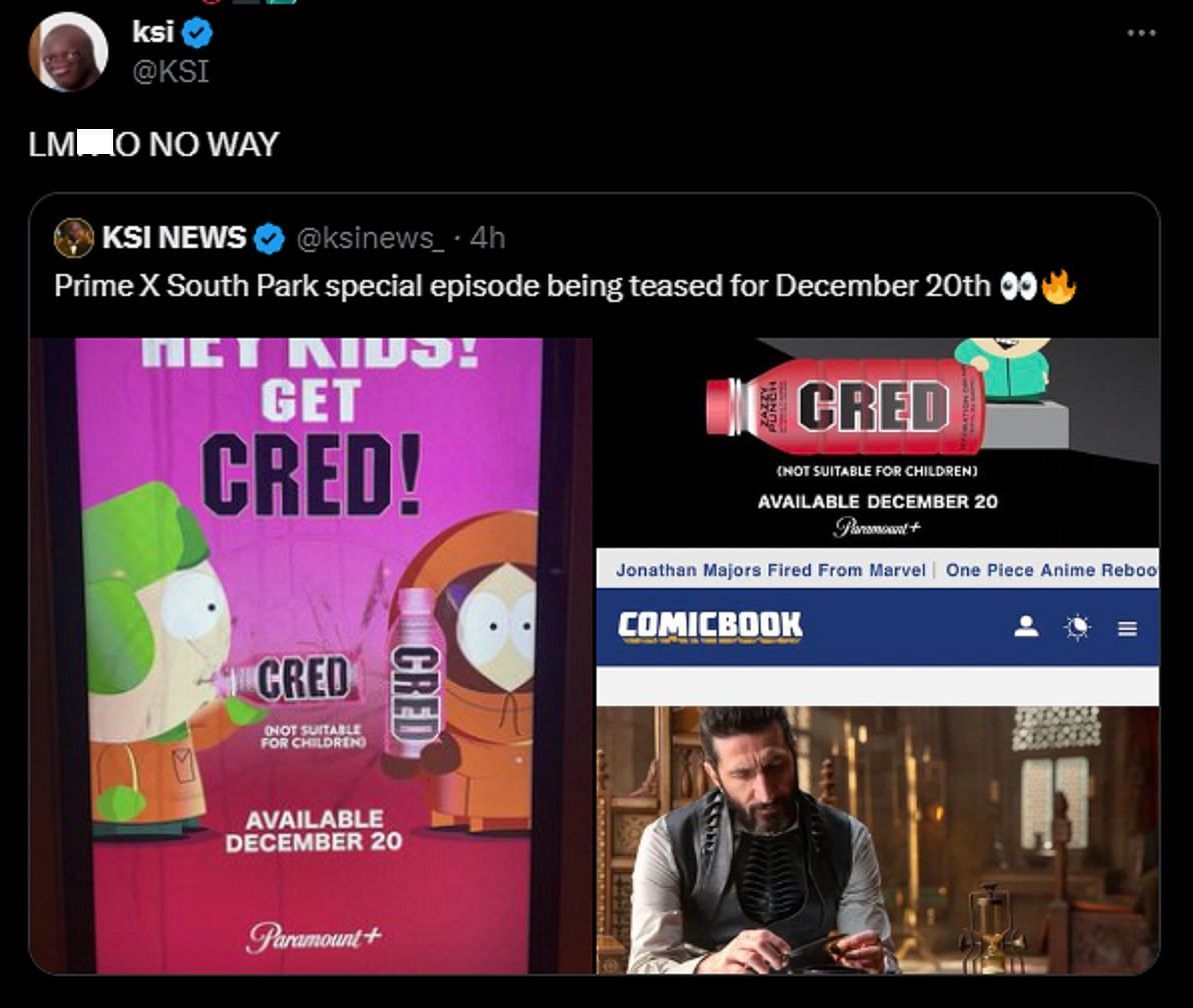 KSI and Logan Paul's Prime Hydration gets parodied by South Park, fans react