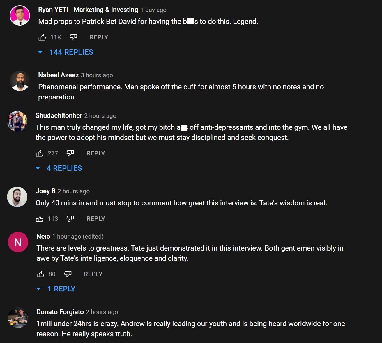 Fans have heavily sided with Tate's words on this one. Viewers even applauded the host for organizing an authentic report and interview with the controversial social media influencer.