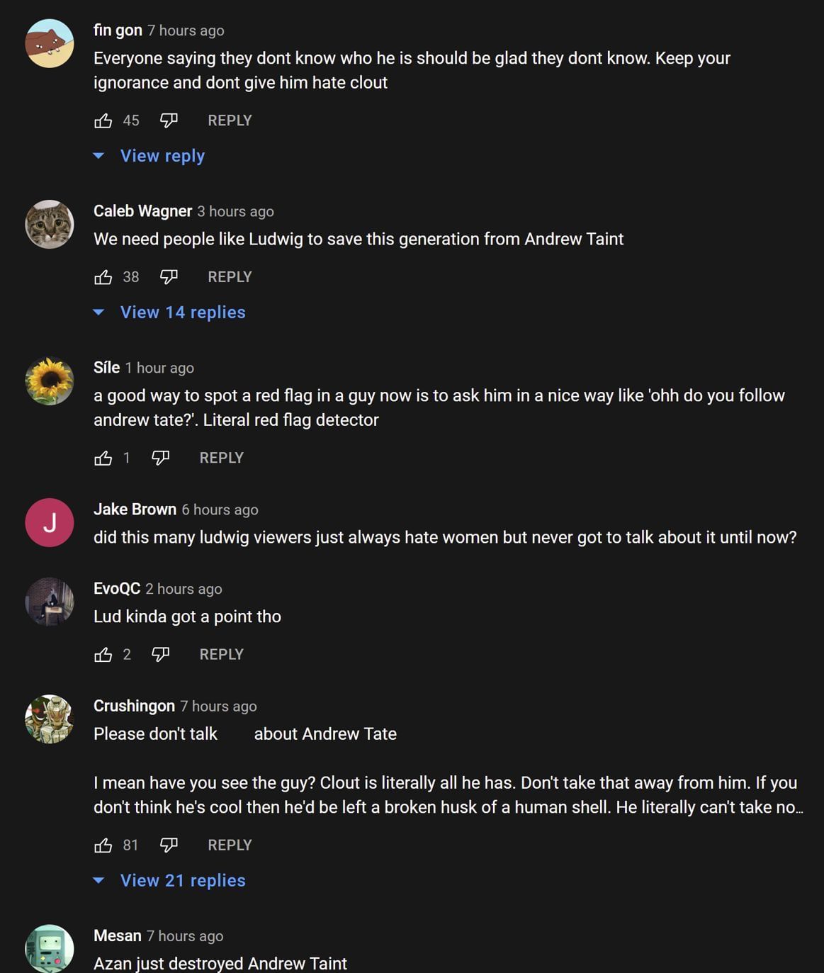 Fans on YouTube react to Ludwig calling out Andrew Tate fans