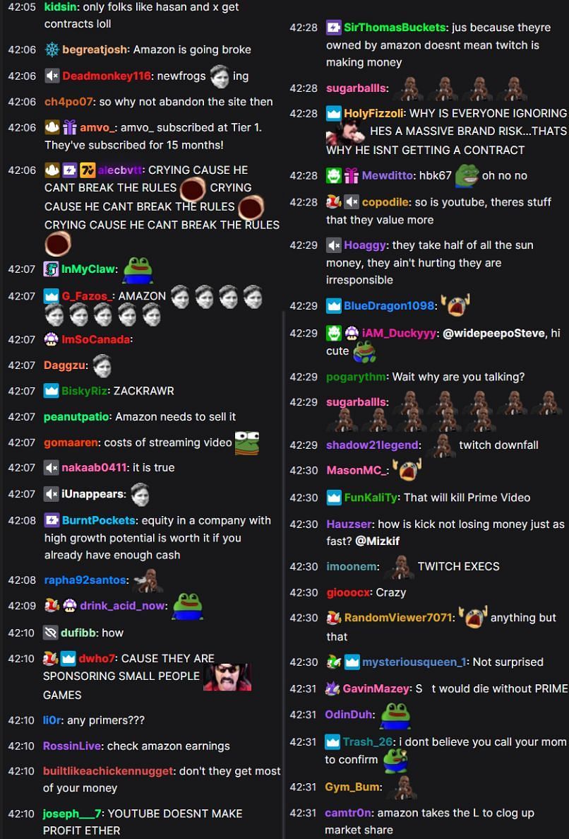 Fans on the Twitch chat had a variety of reactions, with one viewer remarking that YouTube does not make a profit either. Here's a snippet of the chat room:
