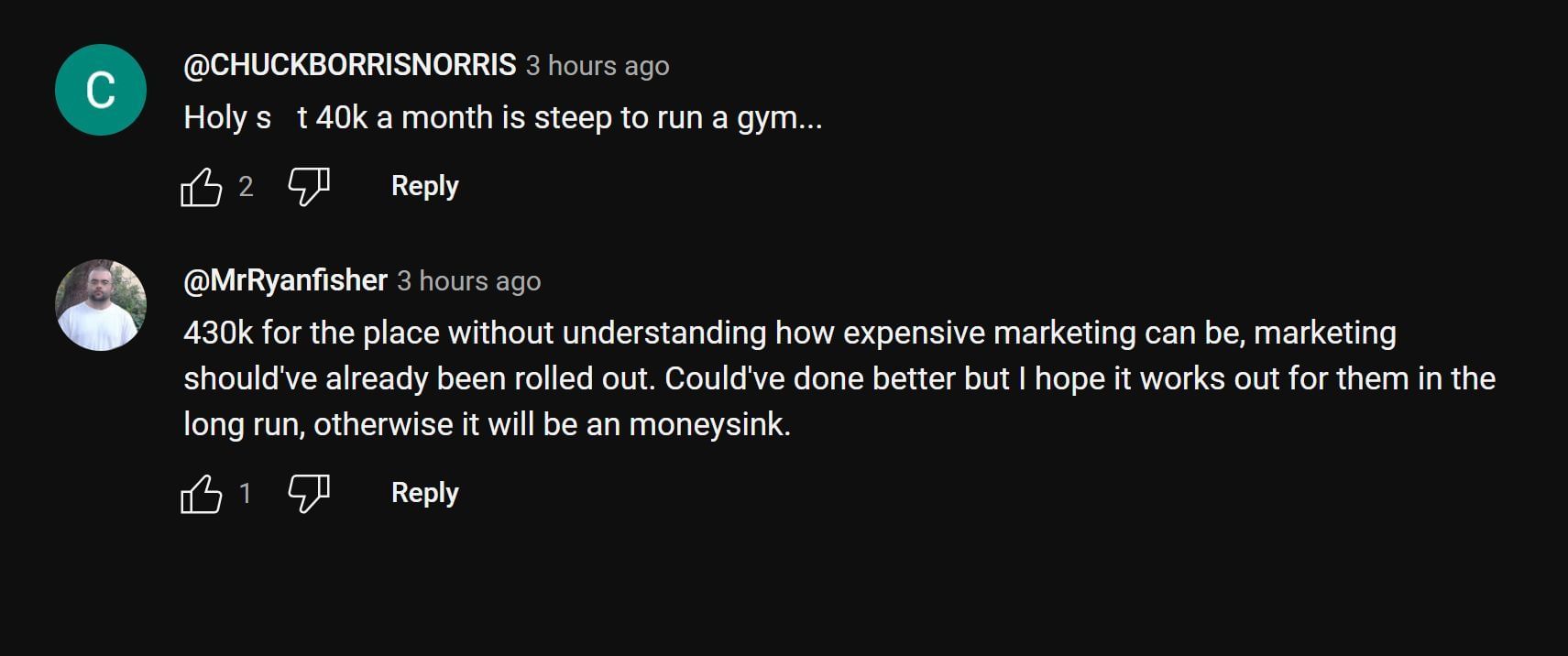 One viewer was surprised that Mizkif was spending $40,000 to operate Iron Forge Gym. Meanwhile, according to @MrRyanfisher, the Texas-based establishment could become a "moneysink" if they failed to allocate funds efficiently.
