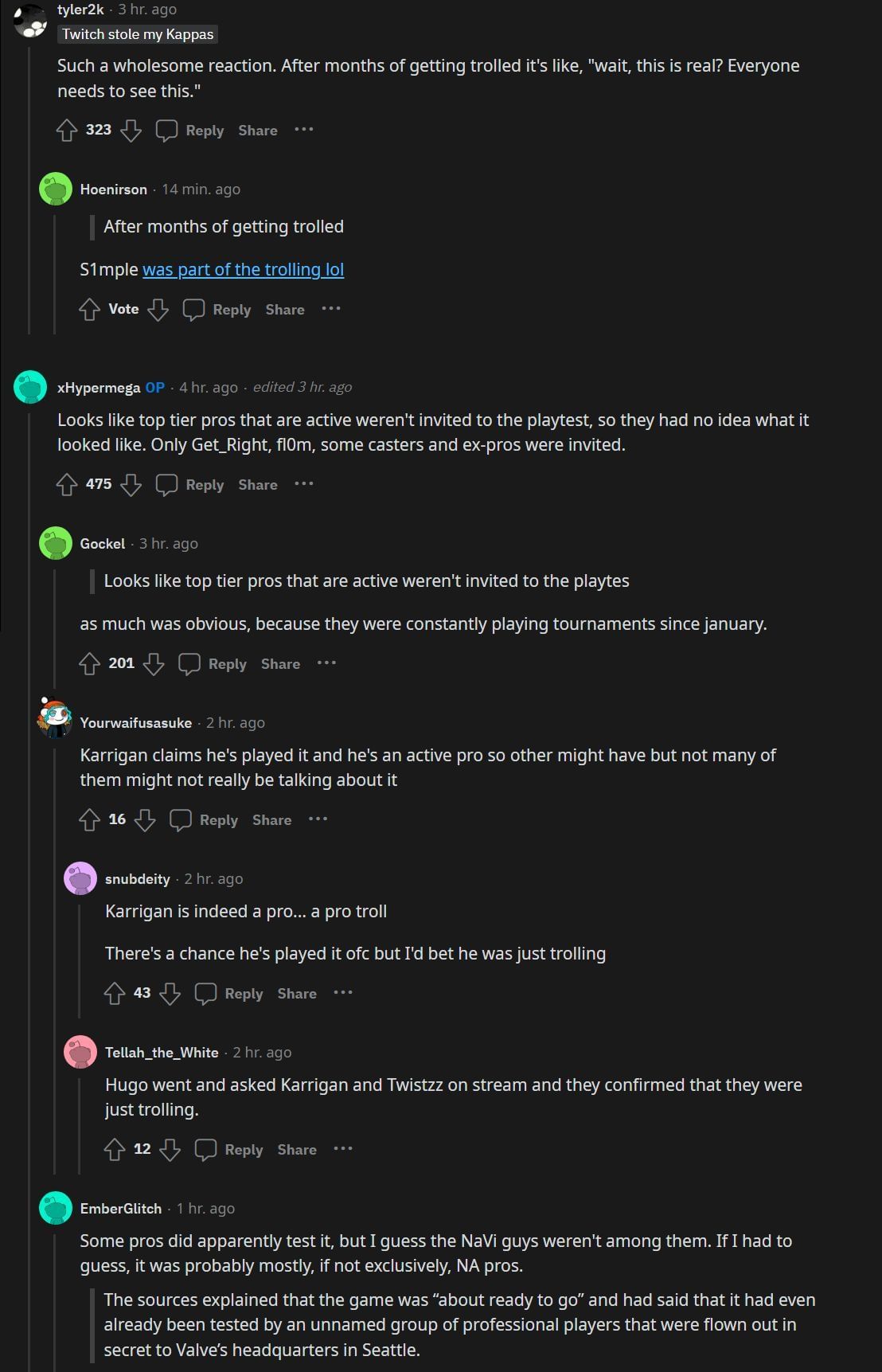 The game has already started beta-testing, and a handful of esporting professionals and players were allowed to try the title before today's big reveal. Among these people were the ESL 17 casters who showed s1mple the official videos and tried to explain the changes:
