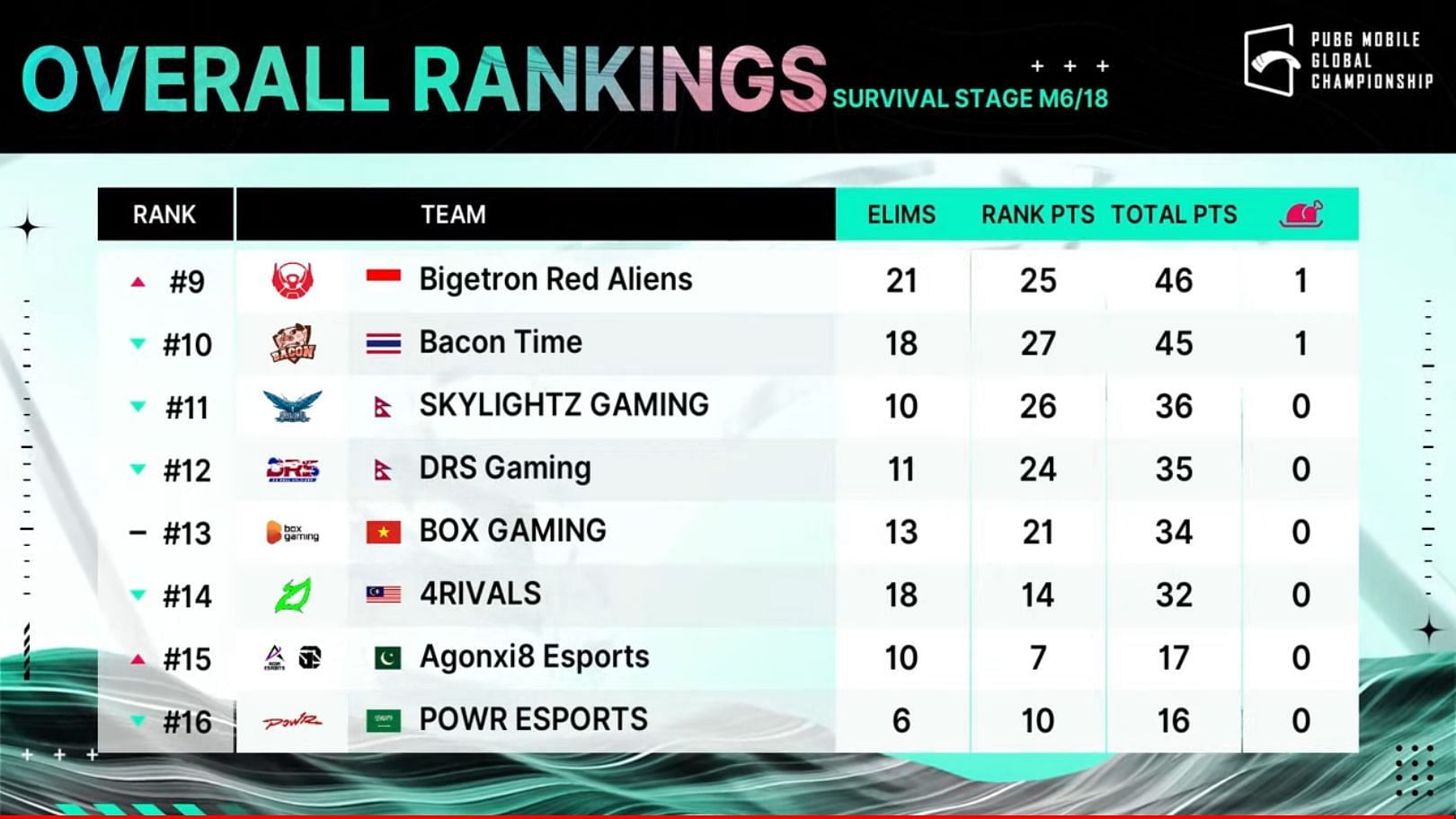 The sixth game of the PMGC Survival Stage saw Bigetron Red Aliens register a beautiful victory. Asserting their dominance from the start, the squad rushed into combat with Bacon Time, finishing them in seconds. Subsequently, Bigetron Red Aliens were able to close out the game with nine kills after getting rid of Alpha7 Esports from Brazil, who finished in the second spot.