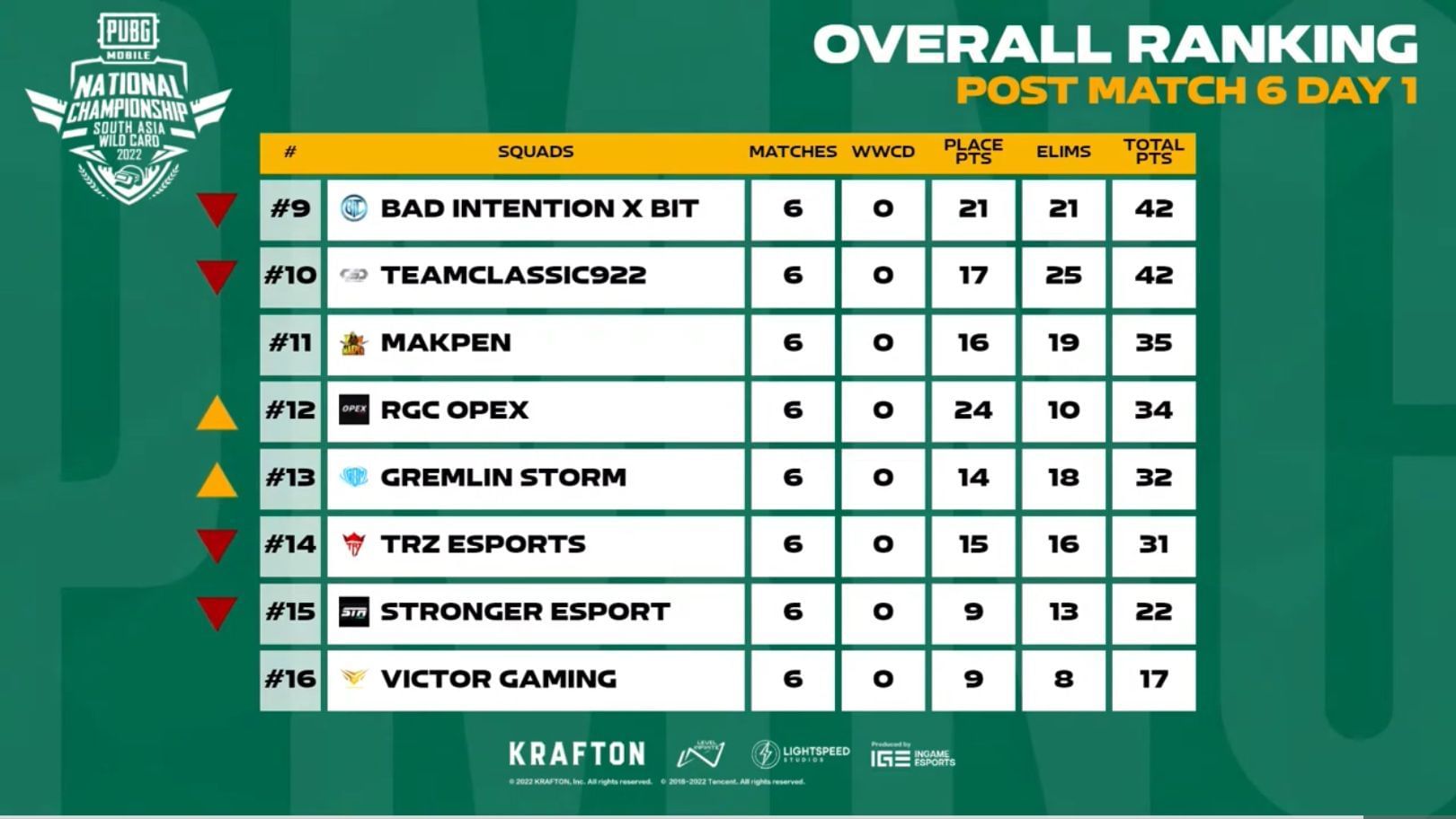 The fourth and fifth games went to NB Esports and EQNX 922, as they claimed 11 kills each. Team 1952 played well in both matches and registered 15 and 17 points, respectively.
