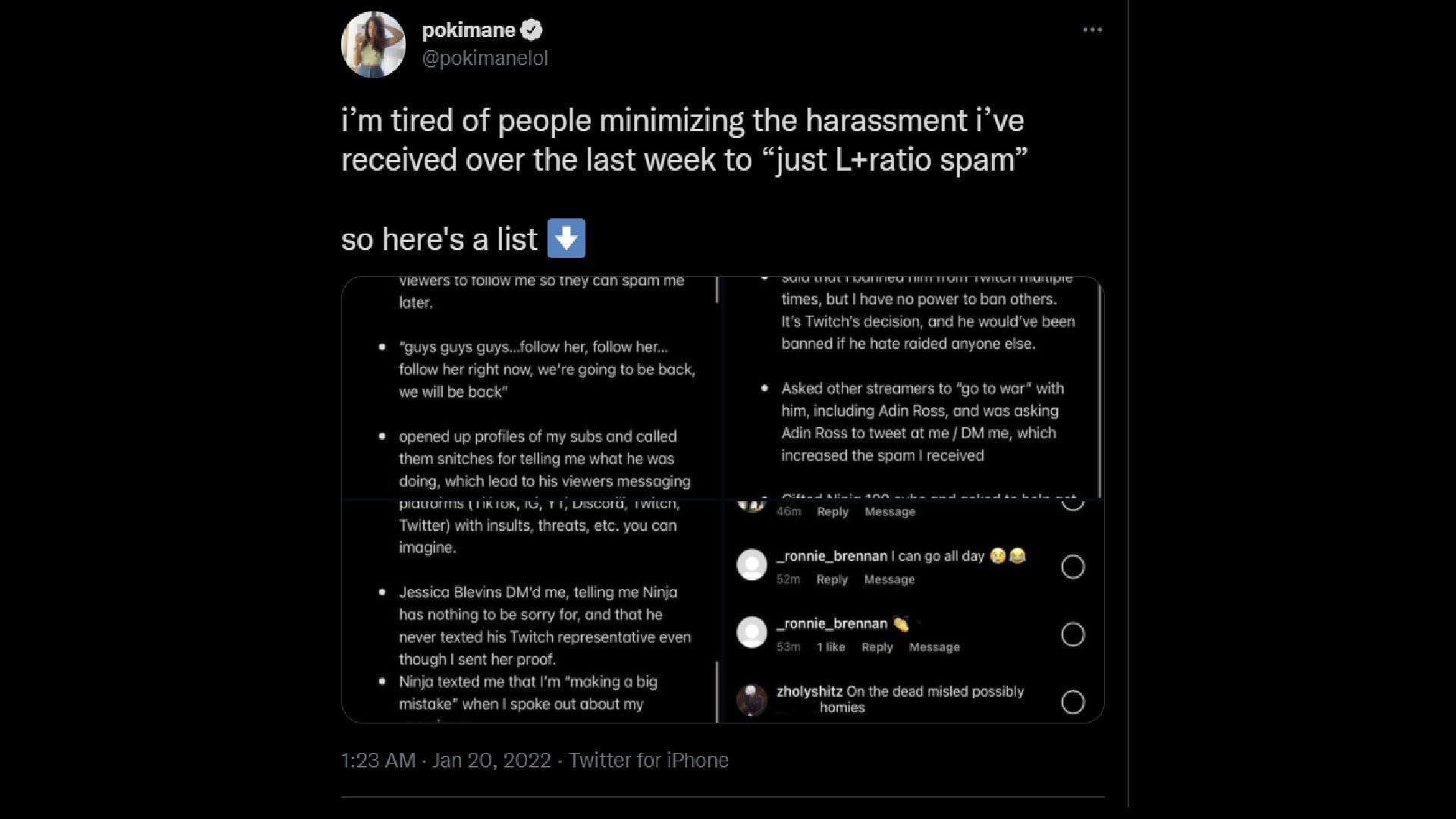 She notified her audience that it was not just the spam “L + Ratio” that affected her. There were multiple incidents where viewers sent her insanely profane messages on multiple social media platforms.